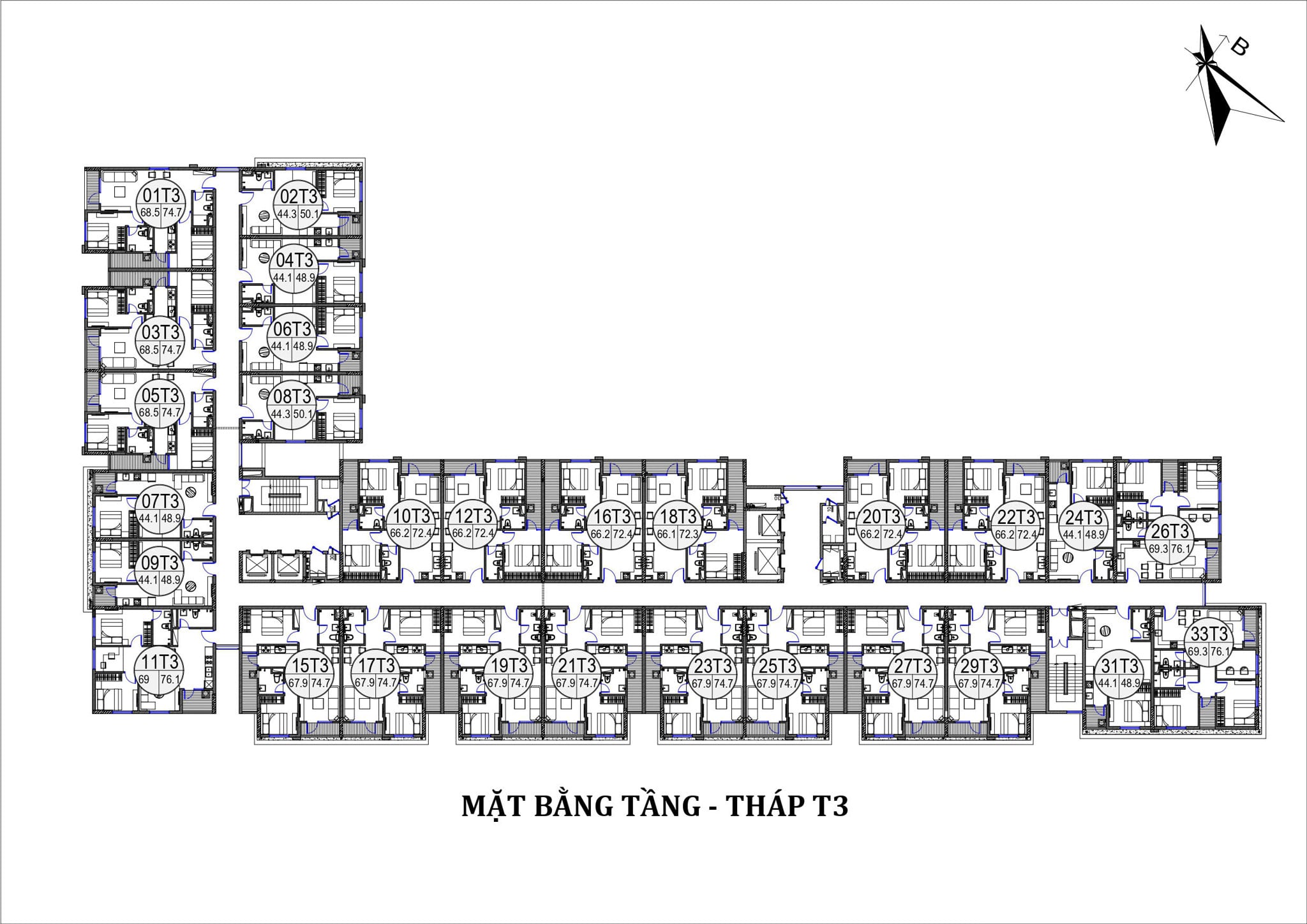 - Xây dựng 03 toàn chung cư T1, T2, T3 cao 9 tầng và tầng tum.